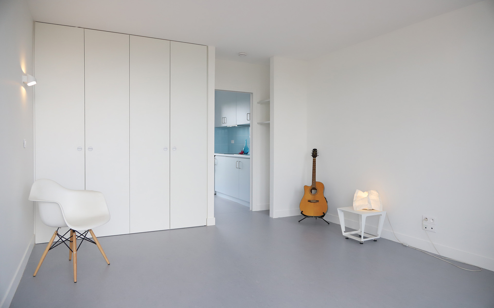 Cette logique de distribution des logements, au-delà de son aspect économique, permet à chaque résident de s’approprier son domicile de façon plus contrastée, comme un vrai chez-soi, bien distinct de celui des autres malgré son caractère modeste. La coursive pourra éventuellement être employée pour placer des plantes, du petit mobilier d’agrément, qui participera à la personnalisation de cet espace. Chaque logement dispose d’une loggia orientée Sud-Ouest dont la profondeur est calculée pour protèger des surchauffes en été.